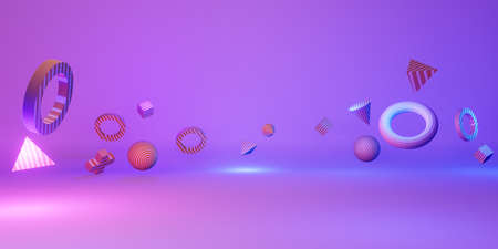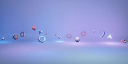 Abstract colorful geometric background with different shape. 3D rendering illustration.