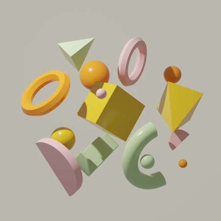 3d rendering of geometric shapes in pastel colors. Abstract background design.