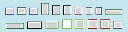 set of blank picture frame modern cartoon icon design with various models. vector illustration isolated on blue background