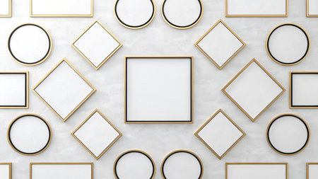 Set of white modern frame on the wall. Abstract background for creative art design and interior decoration. Black frame on white frame.