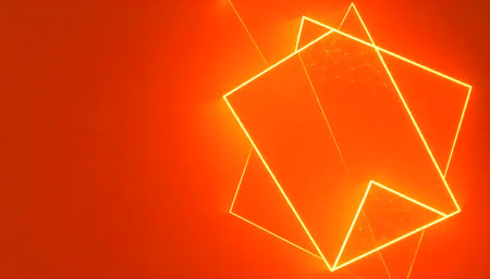 Glowing orange neon shapes create an abstract and modern design.