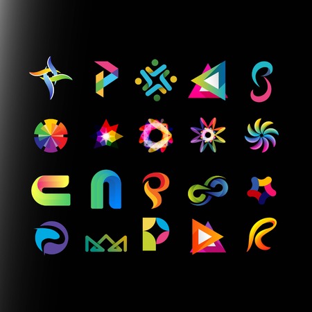 set of abstract coloured logo design vector