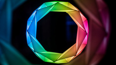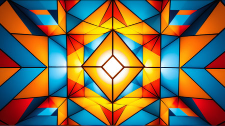 Vibrant geometric color pattern with abstract symmetry and dynamic lighting.