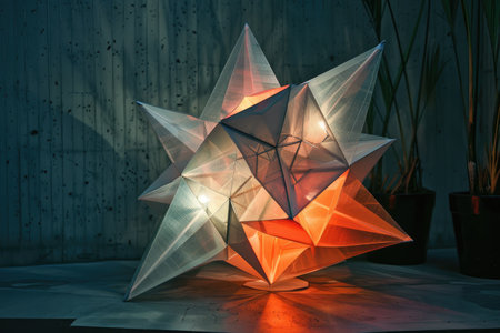 Geometric modern lamps with intense neon glow effect offer a striking visual for technology and celebration themes.