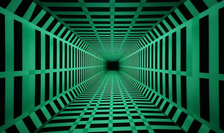Abstract 3D illustration of a tunnel of red and black geometric shapes
