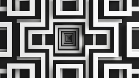 Series of concentric rectangular frames forming a geometric architectural pattern with strong symmetry and contrast. Suitable for modern architectural portfolios, design presentations, and minimalist marketing materials. Utilized by creative agencies and architectural firms to highlight innovative design concepts and spatial aesthetics.