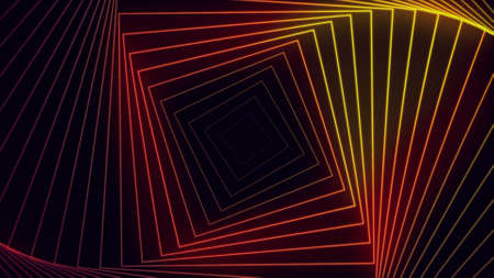 Endless square neon tunnel of rotating red and yellow gradient silhouettes. Motion. Hypnotic spinning corridor, seamless loop.