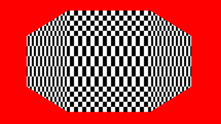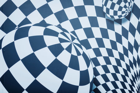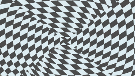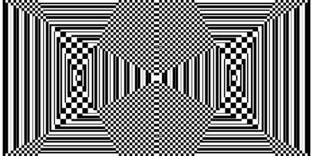 Checkered tunnel illusion, optical art, black and white, radial lines, perspective, twists, blurred background