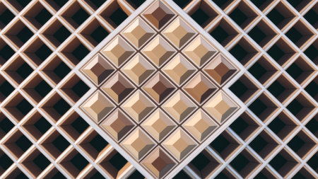 Diamonds and Circles: A Mesmerizing Contemporary Building Facade with Seamless Geometric Ornaments in Full Frame Abstract Background