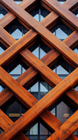 Geometric wooden lattice overlaying glass, creating a striking balance of natural and contemporary design.