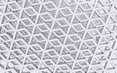 metal grid glass structure background 3D illustration