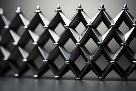 Metal lattice close up with shallow depth and geometric metal pattern.