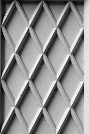 A textured, geometric wall featuring a series of diamond-shaped patterns in a muted gray color.