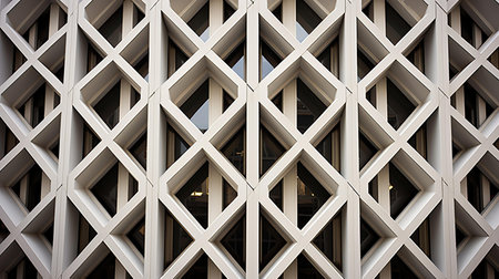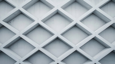 Layers of Geometric Patterns in White Concrete Grid Structure with Depth Perception Showcasing Architectural Design and Modern Aesthetic Appeal