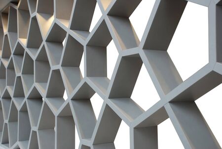 Intricate white geometric patterns form a visually appealing surface, showing modern design elements that enhance interiors.