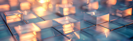 Close-up of abstract glass cubes with soft reflections, creating a modern and artistic visual effect.