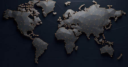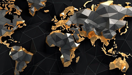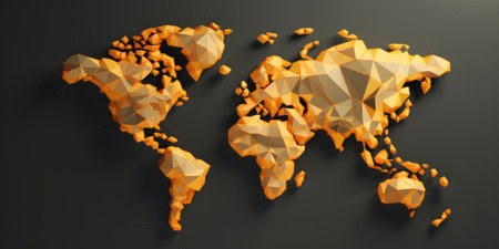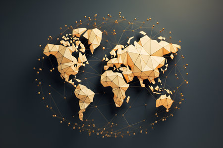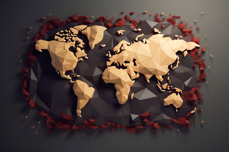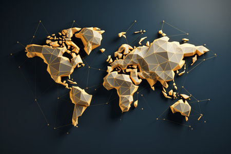 Abstract 3d rendering of golden and black polygonal world map