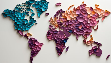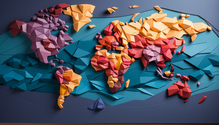 origami paper map of the world, in the style of organic forms blending with geometric shapes, paper cut in polka dot, origami shape, paper art, by ai generative