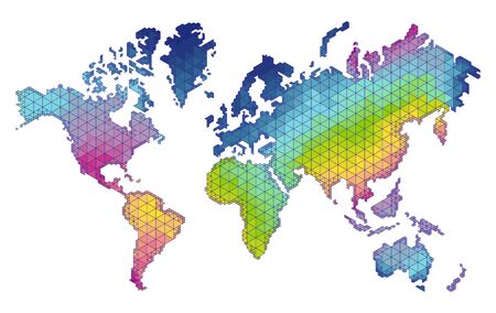Polygonal world map on a white background. The various bright world map made from polygon material. Geometric and digital data concept. Design for modern graphics, infographic, web background. AIG35.