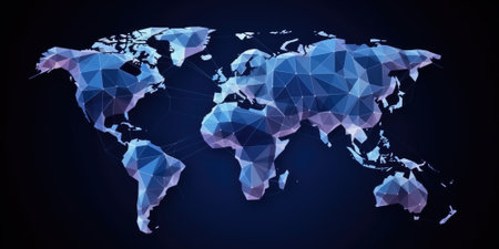 Polygonal mesh map of world. as lobalization internet and technology, travel, internet, earth or other concept. AI generated image, ai