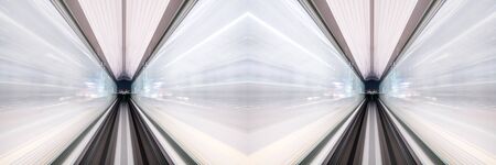 Motion blur of train moving inside tunnel with daylight in tokyo, Japan.