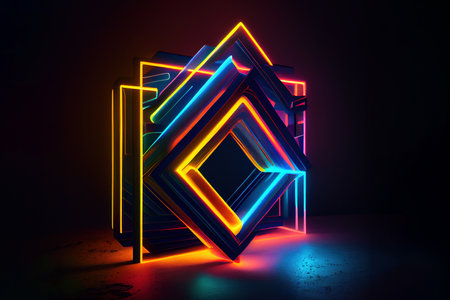AI Generated. Abstract Geometric Composition with Neon Lighting and Vivid Colors