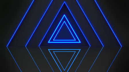 3d render, abstract geometric background, neon light lines, triangles, optical illusion