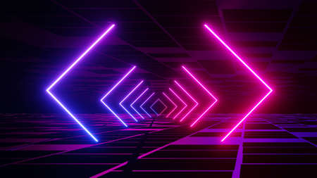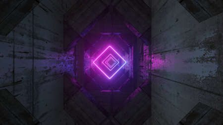 Colorful neon illumination of geometric tunnel 3d illustration