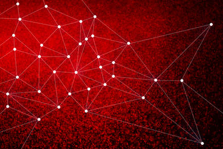This image depicts a complex network of interconnected nodes and lines, all bathed in a vibrant red hue. The nodes are represented as bright dots, while the lines connecting them form a web-like structure. The background is a deep red, with a gradient effect that adds depth and dimension to the image. The overall composition suggests themes of connectivity, technology, and data networks.