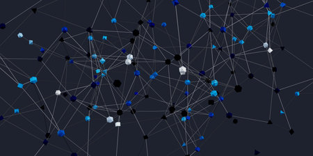 This image depicts an abstract representation of interconnected networks. It features a complex web of nodes and lines against a dark background, illustrating the intricate relationships and pathways within a digital or technological framework. The nodes are illuminated with a soft glow, highlighting the importance of each connection in the overall structure.