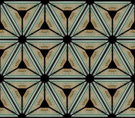 Background design illustration based on traditional oriental graphic motifs. Islamic decorative pattern with golden artistic texture. Arabian ethnic mosaic with interlacing lines and geometric tiled ornaments.