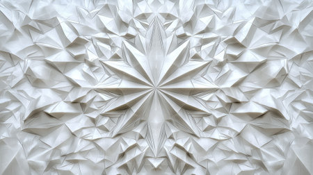 This artwork features a complex origami composition with layered white paper folded into an elaborate star shape. The texture and depth create a visually captivating effect.