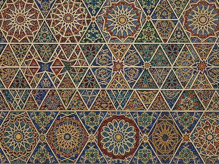 Moroccan pattern on the wall of the mosque in Morocco.