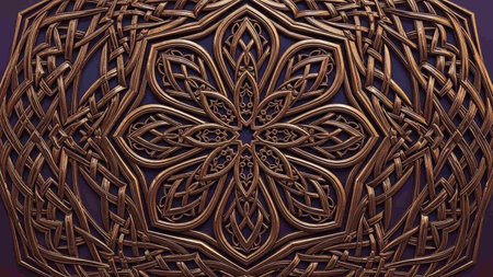 Intricate geometric pattern with swirling designs and gold accents