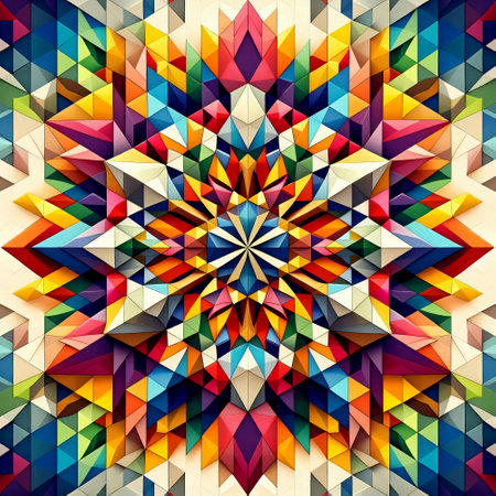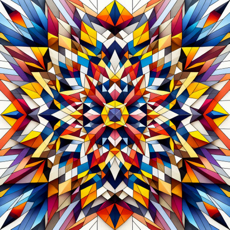 Ornate geometric pattern and artfully abstract multicolored background