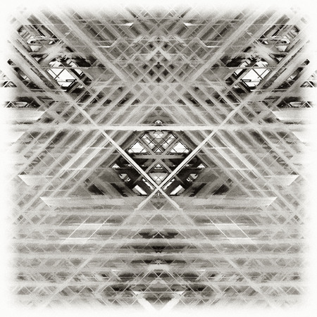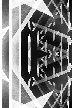 abstract geometric design with intersecting lines and shapes in various shades of gray