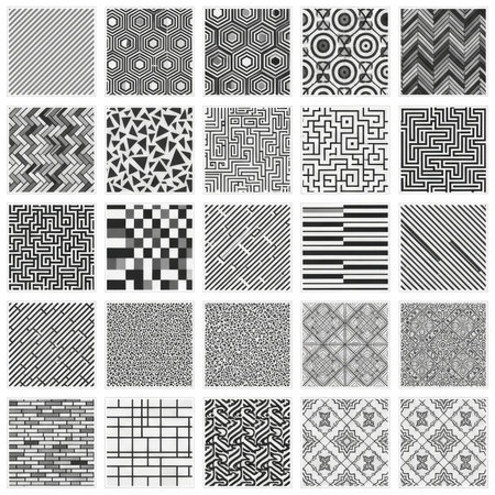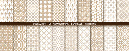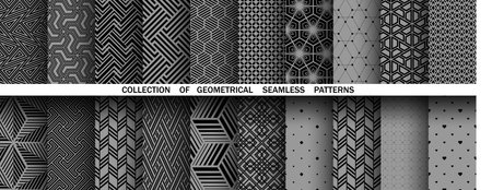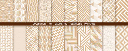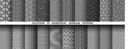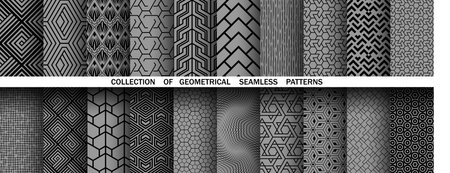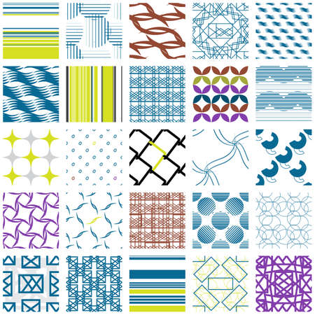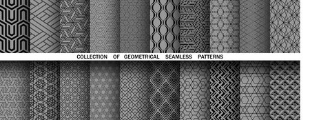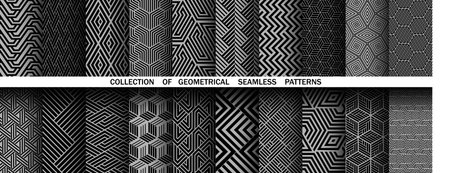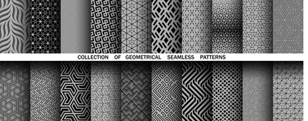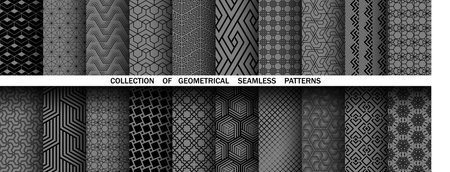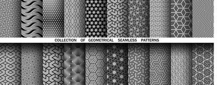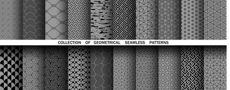 25 Universal different geometric seamless patterns, vector backgrounds collection. Endless texture set for wallpaper, pattern fills, web page background,surface textures. Set of geometric ornaments.