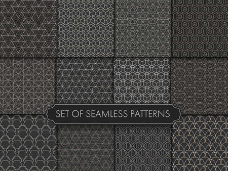 Set of abstract geometric seamless patterns. Monochrome vector backgrounds.