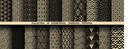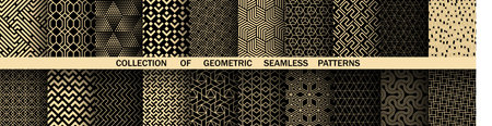 Geometric set of seamless black and golden patterns. Simple vector graphics