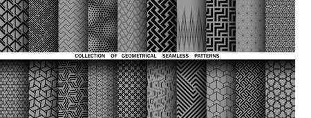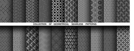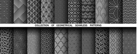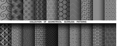 A collection of black white and gray geometric patterns for the background. 22 graphic templates for your design. In a classic and modern, fashionable style. 10 of which are seamless.