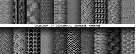 Collection of geometric seamless patterns in vector format Ideal for use in design projects such as fabrics, wallpapers and backgrounds High-quality designs that are editable and scalable