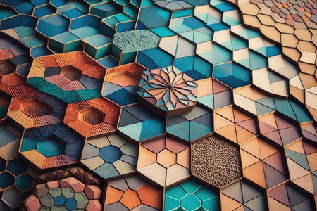 Mosaic art abstract background in hexagonal shape. distinct generative AI image.