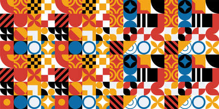 Seamless Bauhaus Abstract vector background. Retro geometric pattern. Simple shapes mosaic.