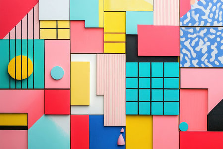 Geometric shapes in pastel tones create a vibrant background design for various uses