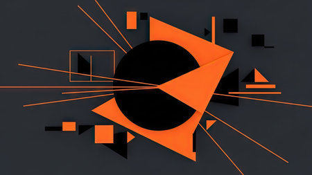 3d illustration of abstract geometric composition, black and orange color.