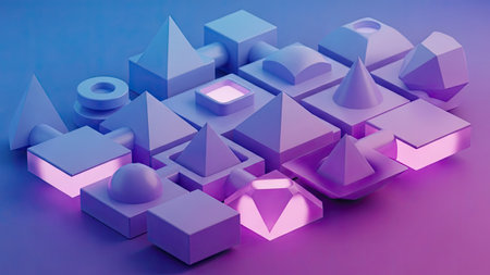 3d rendering of abstract geometric shapes in blue and violet colors.