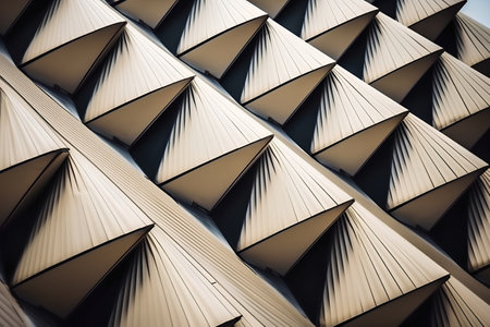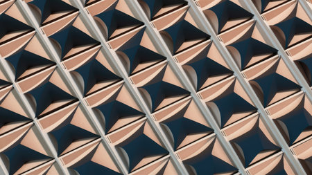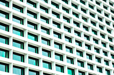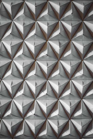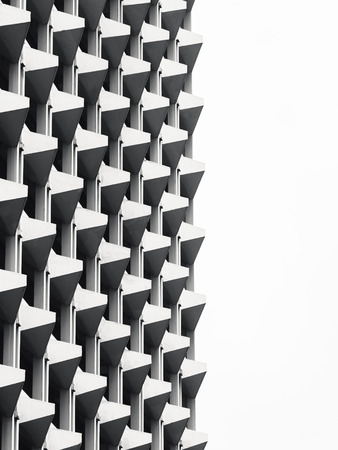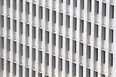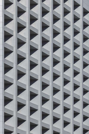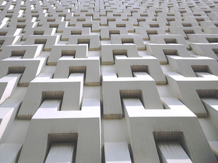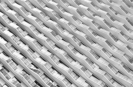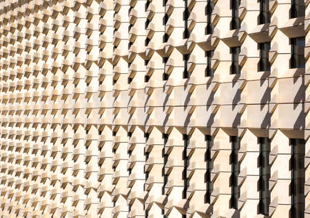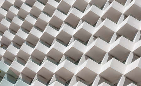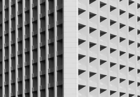 Closeup ventilated facade of concrete building. White ventilation with creative and beautiful pattern architecture.