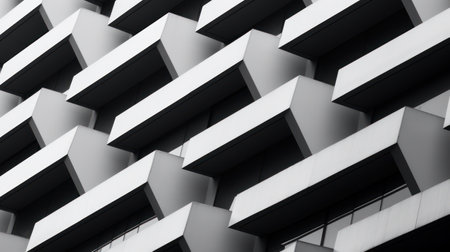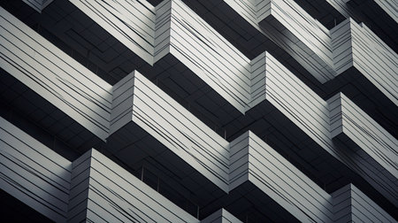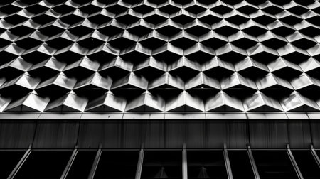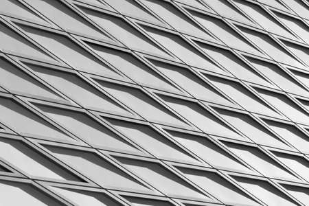Black and white geometric texture with abstract metal pattern in interior, symmetric architectural steel background.