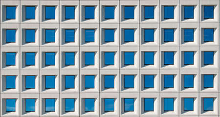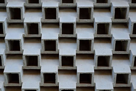 Closeup ventilated facade of concrete building. White ventilation with creative and beautiful pattern architecture. White building. Architecture abstract background. Ventilated facade dirt with stain.