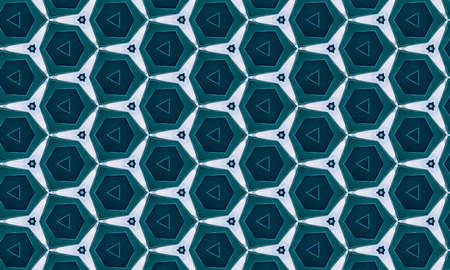 Optical illusion with pyramids in horizontal position moving towards each others tops. Design. Blue and white seamless loop geometric pattern.